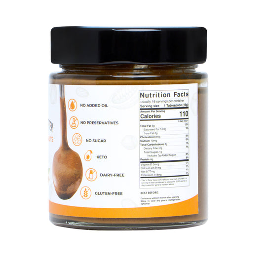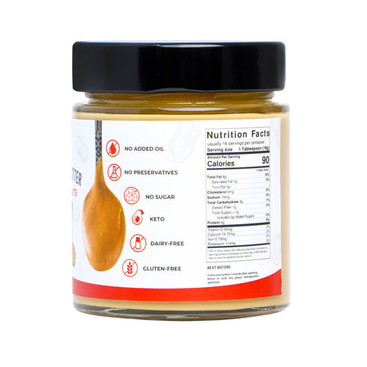 Made with high-quality, all-natural ingredients, our jars of happiness are made without oil, sugar and preservatives. This is to offer you the creamiest, yummiest, and most of all, NUTTIEST experience.